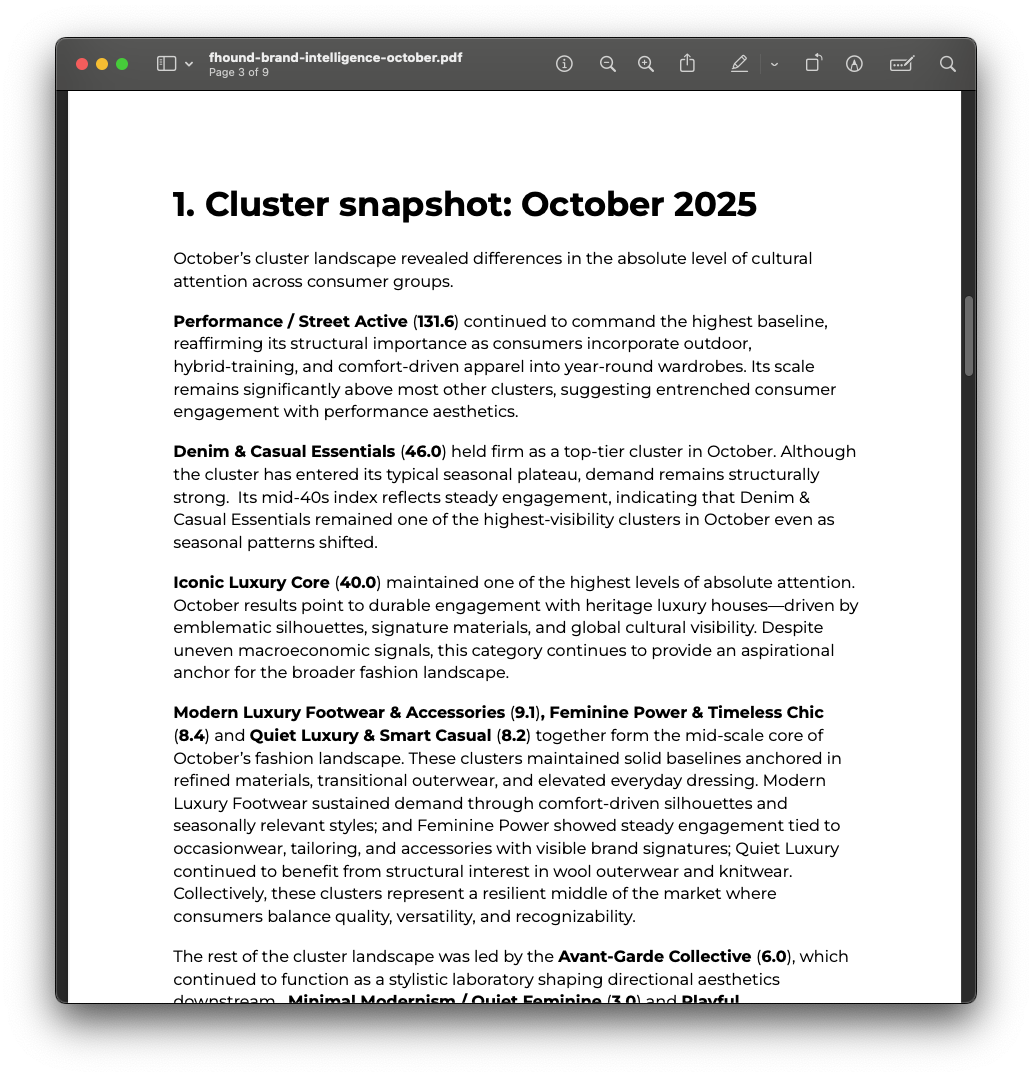We transform behavioral search data and style mapping into actionable strategic foresight for the modern fashion leader.